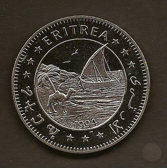 Al centro racchiuso in un cerchio un barca, un cammello ed una palma. Sotto a tutto l'anno, 1994. Fuori dal cerchio attorno la scritta ERITREA separata da un gruppo di 3 stelle, in Italiano, Ammarico ed Arabo.