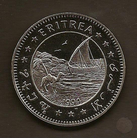 Al centro racchiuso in un cerchio un barca, un cammello ed una palma. Sotto a tutto l'anno, 1994. Fuori dal cerchio attorno la scritta ERITREA separata da un gruppo di 3 stelle, in Italiano, Ammarico ed Arabo.