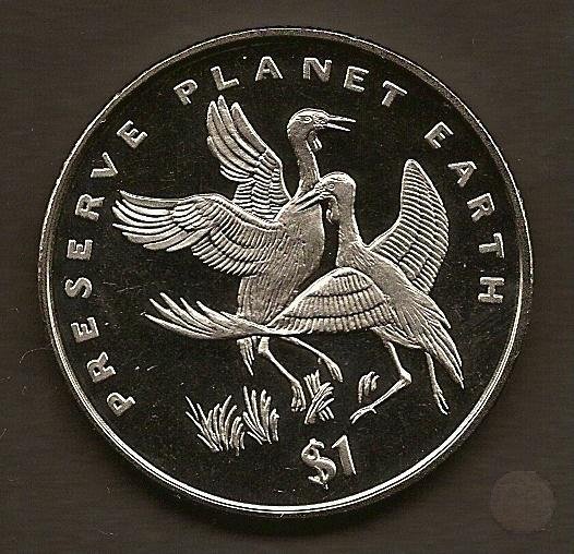 Al centro due gru carucolate o di Wattled. Attorno la scritta in inglese "PRESERVE PLANET EARTH" e sotto il valore "$ 1".