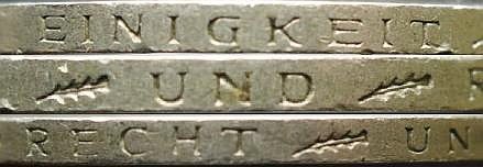 I SEGNI DI ZECCA SEGUENTI SONO PER LE CITA' DOVE SONO STATE CONIATE QUESTE MONETE.D-MONACO,F-STOCCARDA,G-KARLSRUHE,J-AMBURGO.