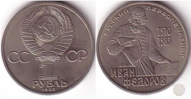 1 Rublo 1983 - 400° Ann. morte di Ivan Fedorov (1983 - Leningrado) Entrambe le facce | Wed 17/03/10 - 12:35 | |||