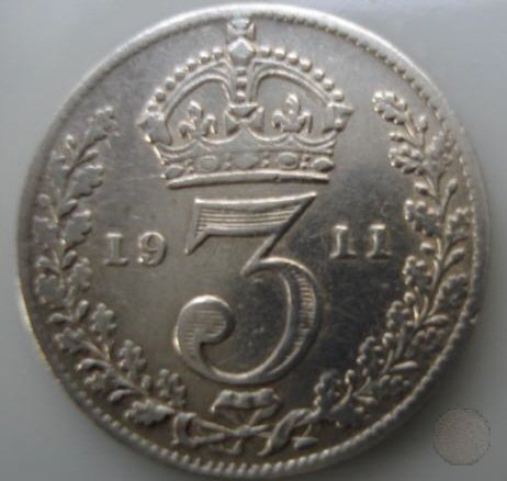 3 PENCE ARGENTO (1911 - Londra) Dritto | Mon 28/03/16 - 23:44 | |||