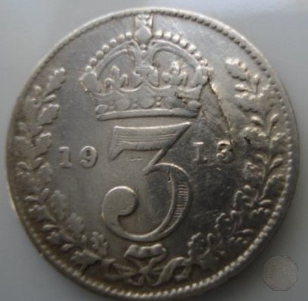 3 PENCE ARGENTO (1913 - Londra) Dritto | Mon 28/03/16 - 23:45 | |||